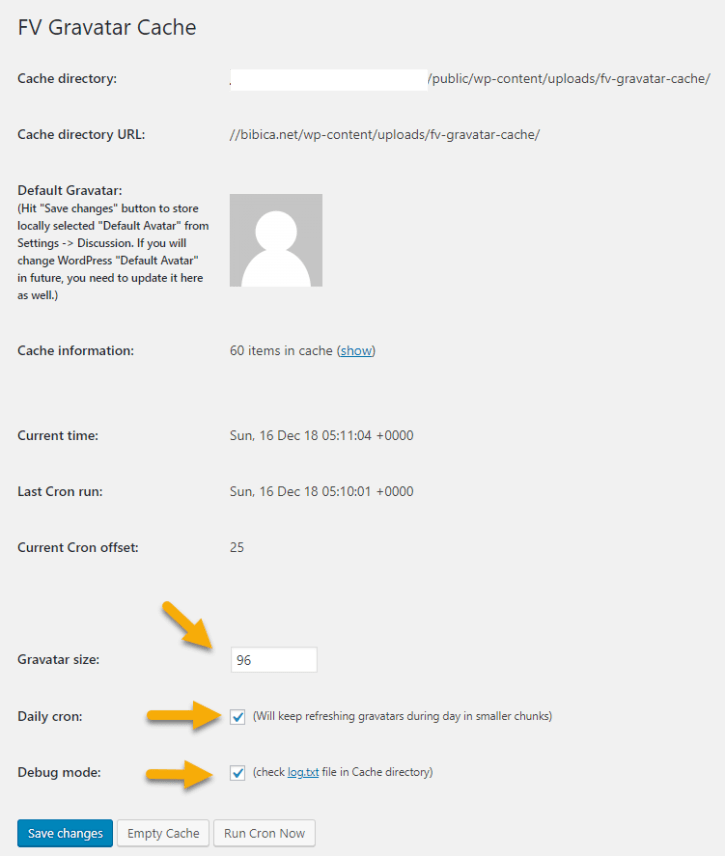 Yeb, cài FV Gravatar Cache vào thì avatar giờ nó sẽ load từ server của bạn, không load qua server của Gravatar nữa, thực tế khi nào bạn có 1 bài post, có từ vài trăm tới vài ngàn comment thì mới thấy hiệu quả rõ, còn không thì chắc cũng không khác gì giữa cài và không cài 😀