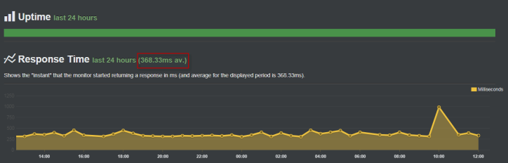 Như bạn thấy, đây là tốc độ phản hồi trung bình của ngoirungdui.com, khoảng ~ 350 ms lúc bình thường, và ~ 1000 ms (1s) khi có khách vào tạo đơn mua hàng …