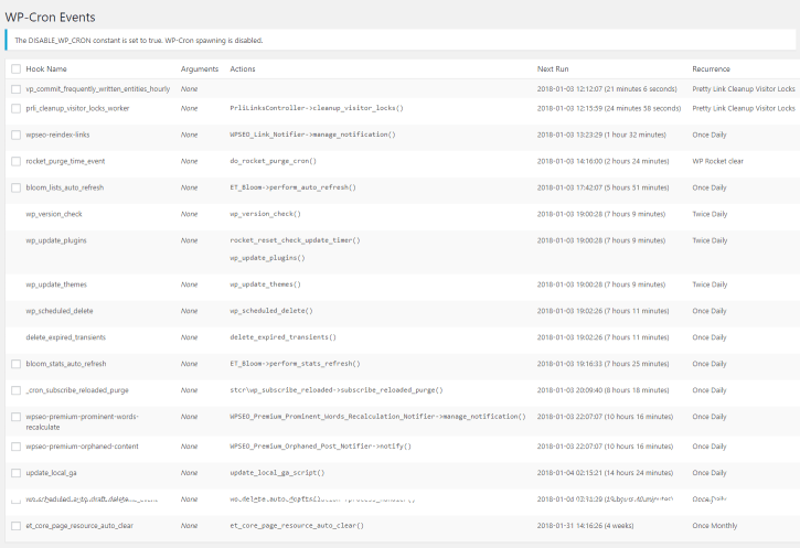 Bạn có thể dùng WP Crontrol, cho phép bạn xem và kiểm soát những gì đang xảy ra trong hệ thống wp-cron, cần thiết thì sửa, xóa nó đi cho phù hợp với nhu cầu sử dụng, nhiều plugin bạn cài vào rồi kể cả xóa đi nhưng nó vẫn còn rác trong database và wp-cron, hãy xóa đi cho nhẹ bớt, bạn có thể tăng giảm thời gian chạy các even cho phù hợp nhu cầu, như chuyện check theme, plugin khi hệ thống đã ổn định, thì để 1-2 tháng check 1 lần là vừa, check nhiều quá cũng chẳng để làm gì …